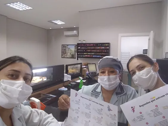 O treinamento tem ocorrido de forma dinâmica com a prática da mesma, relembrando os 5 momentos em que deve ser realizada e a importância de ser eficaz. O material com a técnica correta foi anexado em alguns pontos do hospital considerados necessários, para que a prática seja relembrada sempre pelos profissionais.